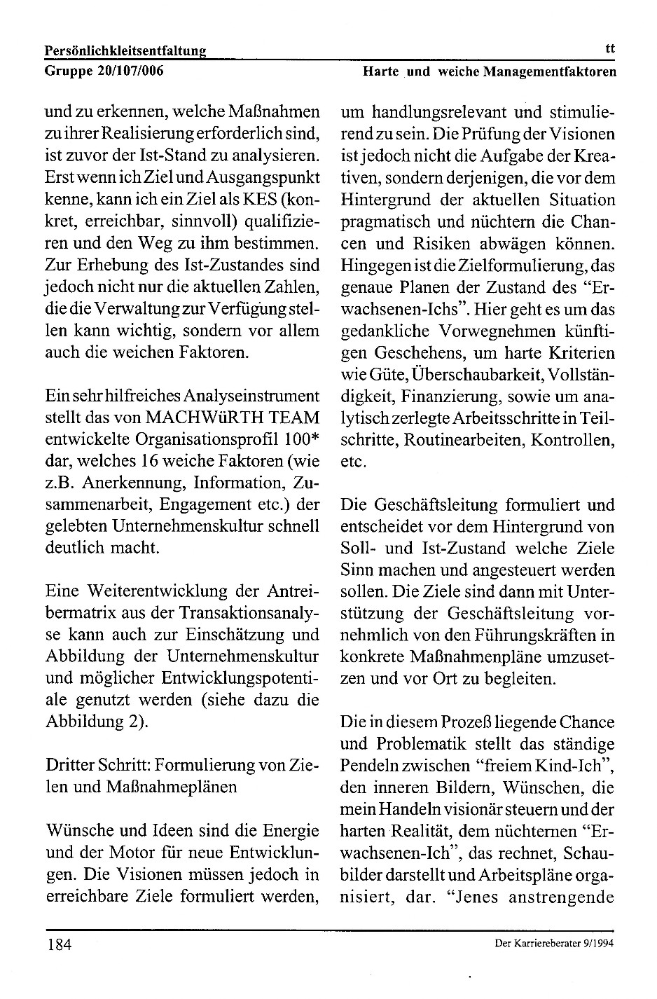 Artikel im Karriereberater 1994: "Change-Management, wer sich treu bleiben will muss sich ändern" - SCHULZE Unternehmens- und Personalentwicklung