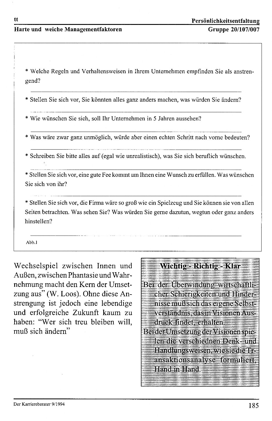 Artikel im Karriereberater 1994: "Change-Management, wer sich treu bleiben will muss sich ändern"
